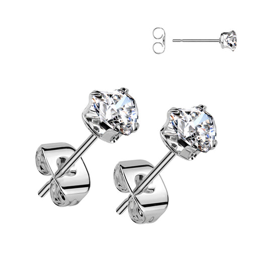 Implant Grade Titanium Pair of Bezel Set CZ Earring Studs