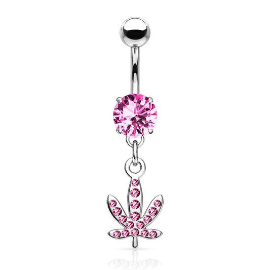 CZ Center Wire Set White Flower 316L Surgical Steel Belly Bar