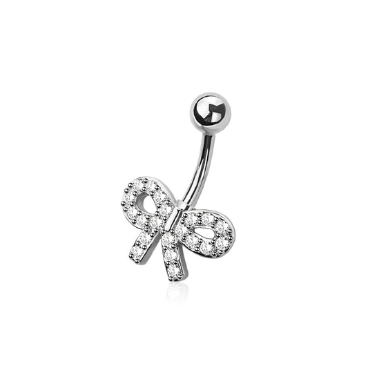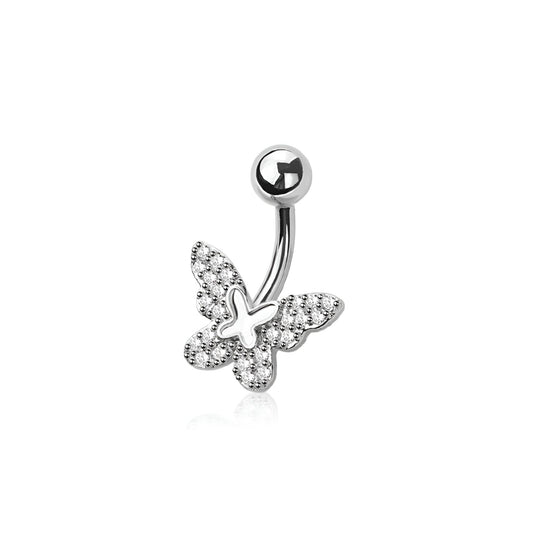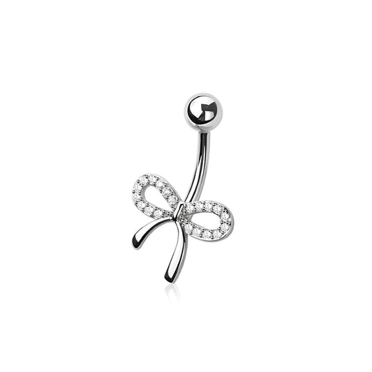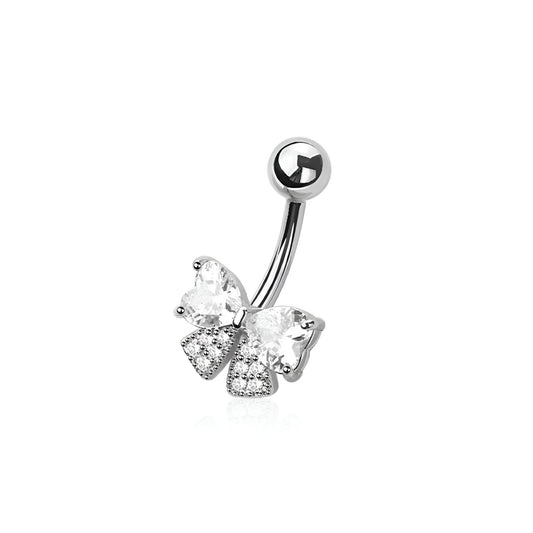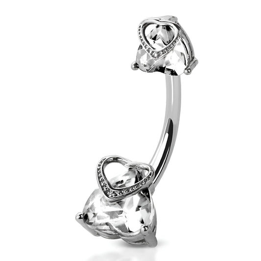 Double Clear Cz Royal Heart Prong Set Belly Bar