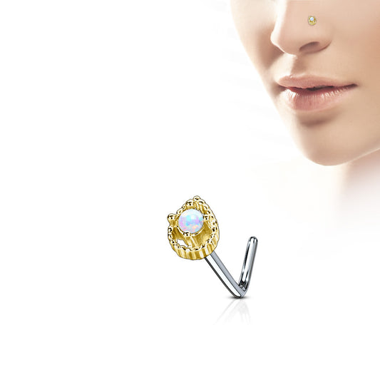 Tear Drop Prong set Opal Centre Nose Stud