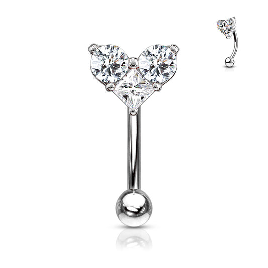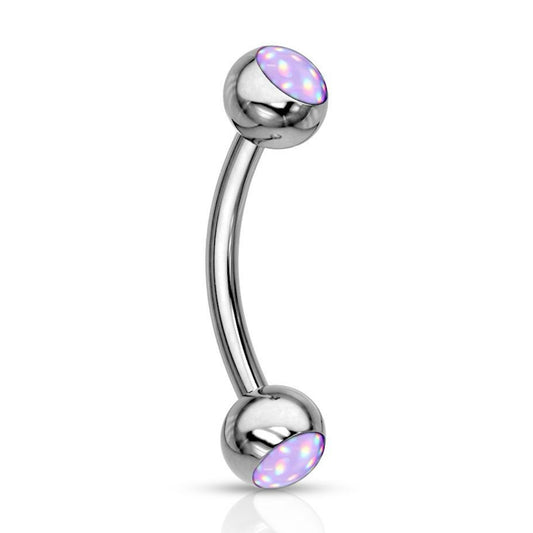 CZ Center Opal Glitter Flower 316L Surgical Steel Curved Barbells