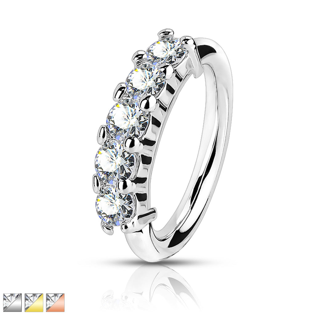 316L Surgical Steel Bendable Nose Ring With 5 Lined CZ