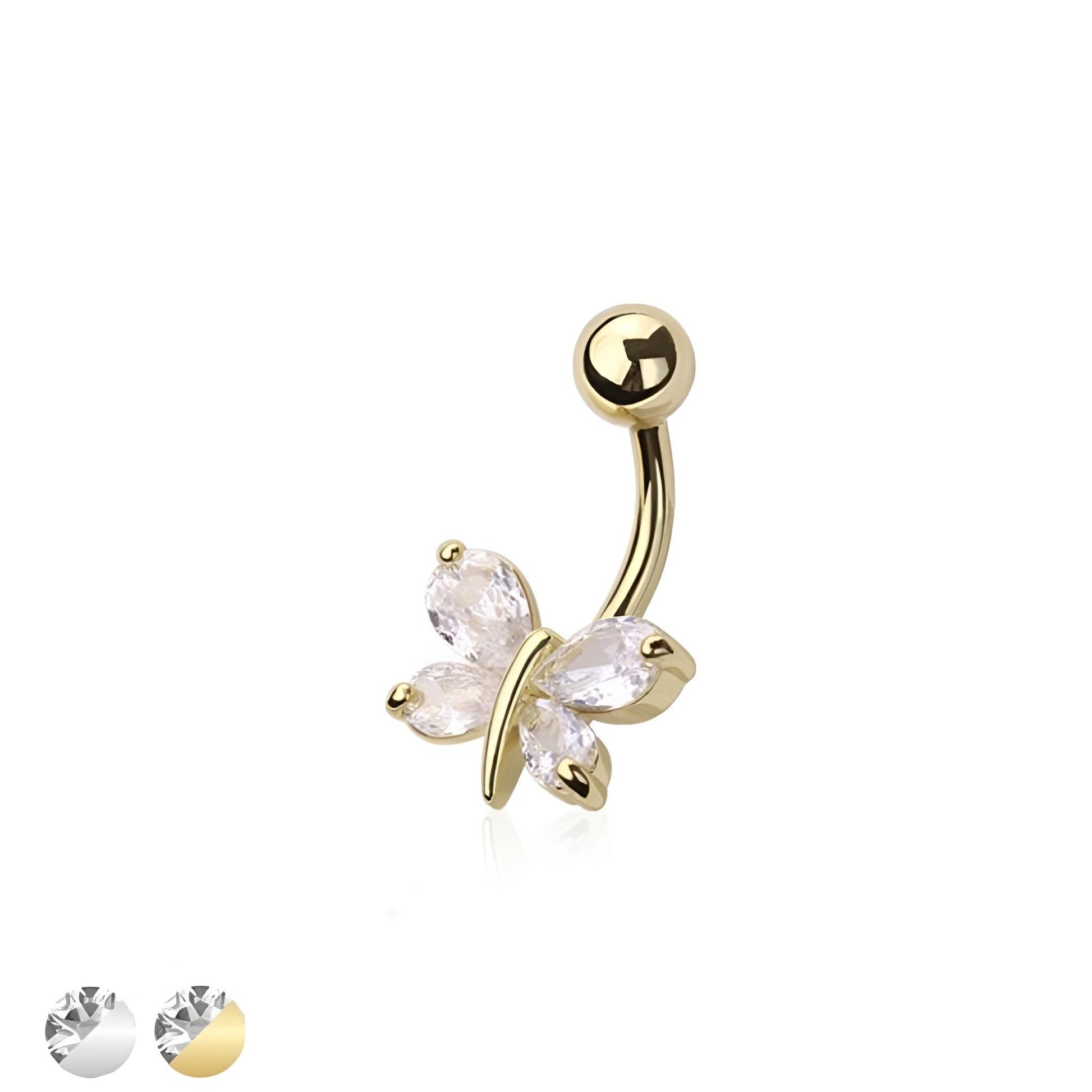 Add a touch of beauty to your belly piercing with our Butterfly Belly Bar! Made with 316l surgical steel and brass, this bar features a sparkling CZ butterfly. With a 1.6mm thickness and 10mm length, it's the perfect balance of elegance and comfort. Fly away with style and confidence!