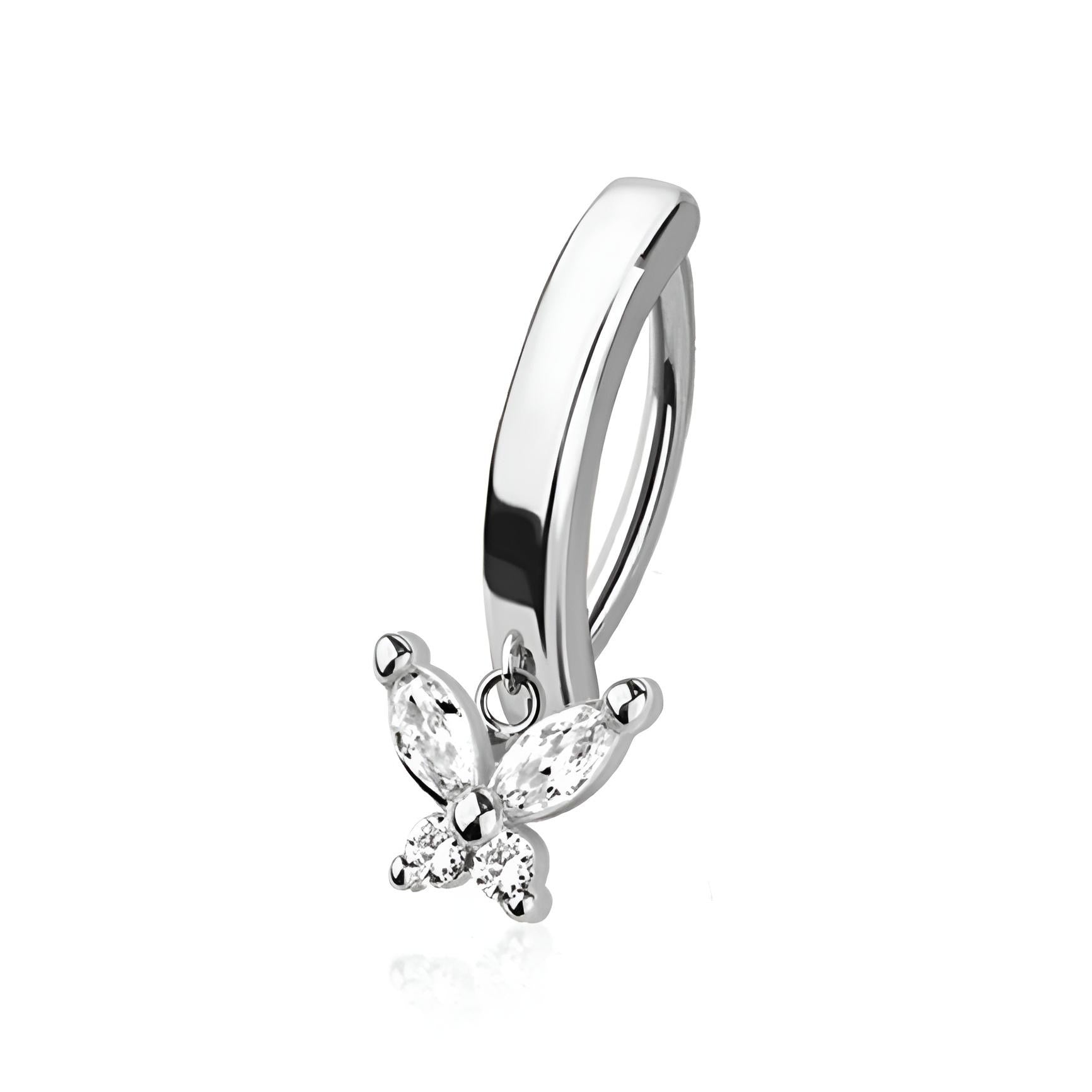 Add a touch of whimsy to your belly button piercing with our Butterfly Clicker Style Belly Bar! Made from high-quality 316L surgical steel and brass, this 1.6mm thick hoop features a charming butterfly design and a 10mm bar length for comfortable wear. Upgrade your piercing and add a playful touch to your style!