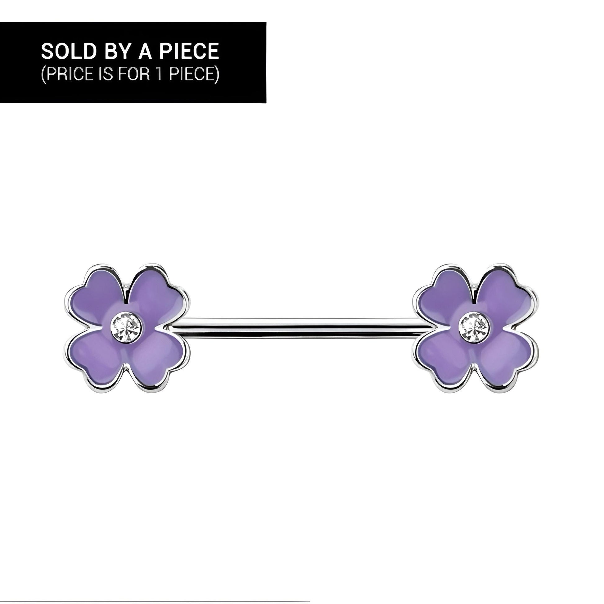 The Clover Nipple Bar is crafted from durable 316L surgical steel and brass. With a 1.6mm thickness and a 14mm bar length, it offers a comfortable fit while maintaining strength. This quality construction supports your piercing needs with reliability and style.