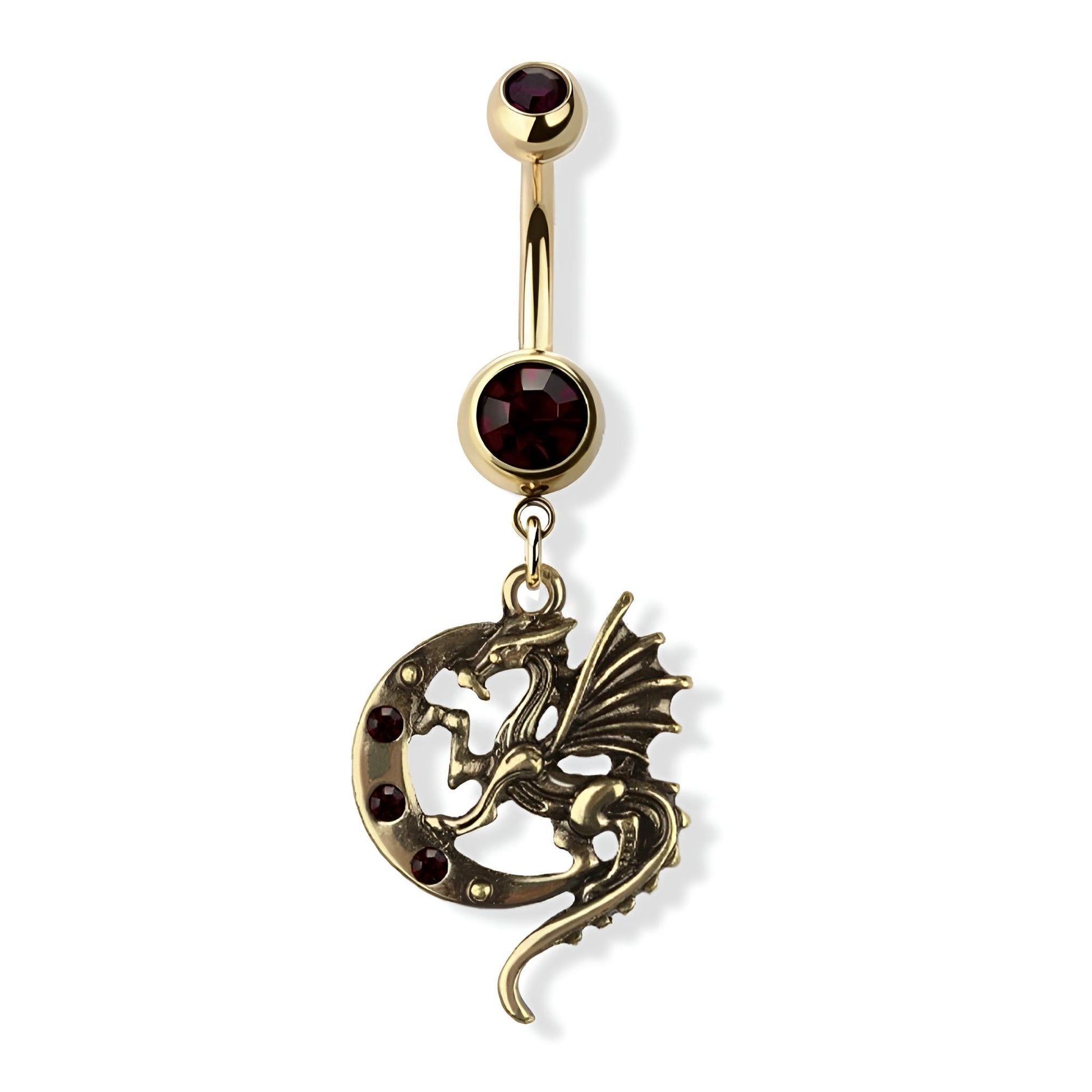 Get ready to add some mystical flair to your belly piercing with our Crescent Moon Dragon Belly Bar! Made of 316L surgical steel and brass, this 1.6mm thick naval ring features a unique crescent moon dragon design that is sure to turn heads. With a 10mm bar length, it's the perfect addition to your body jewellery collection.