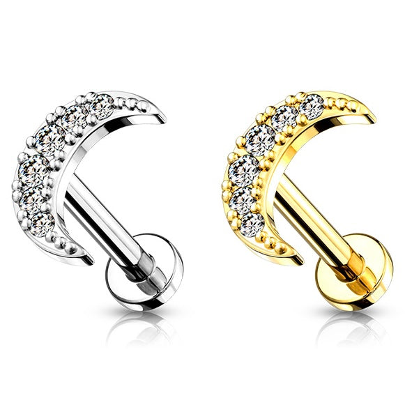 Whether you're looking to add some sparkle to your everyday look or want a statement piece that will turn heads at any event, our CZ Paved Crescent Moon Top on Internally Threaded has got you covered. So why wait? Order now and experience the perfect blend of style and comfort!