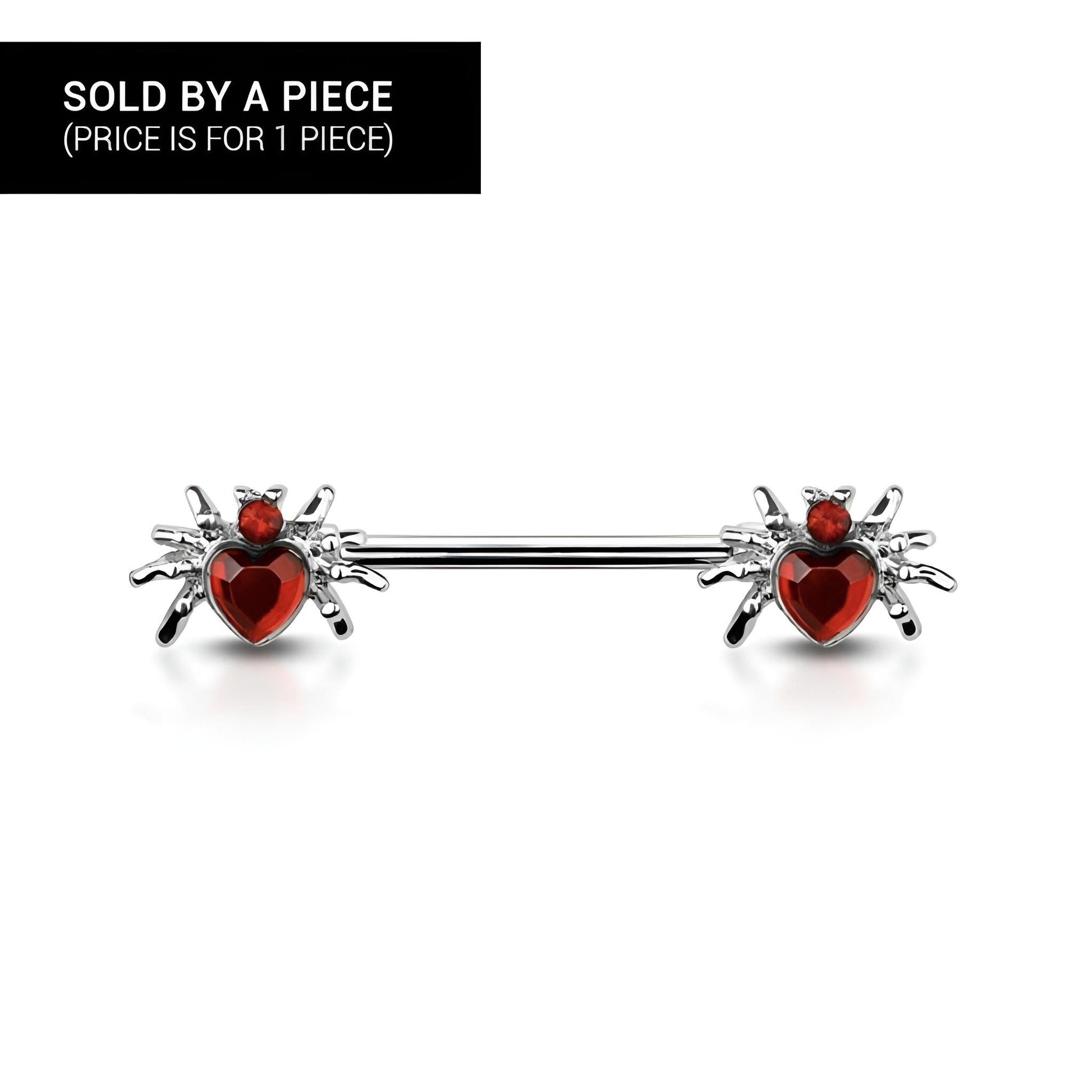 The Heart Spider Nipple Bar is crafted from durable 316L surgical steel and brass, ensuring safety. With a 1.6mm thickness and a 12mm bar length, it offers a comfortable fit while maintaining a stylish edge. This piece combines quality materials with thoughtful design to support your piercing needs confidently.
