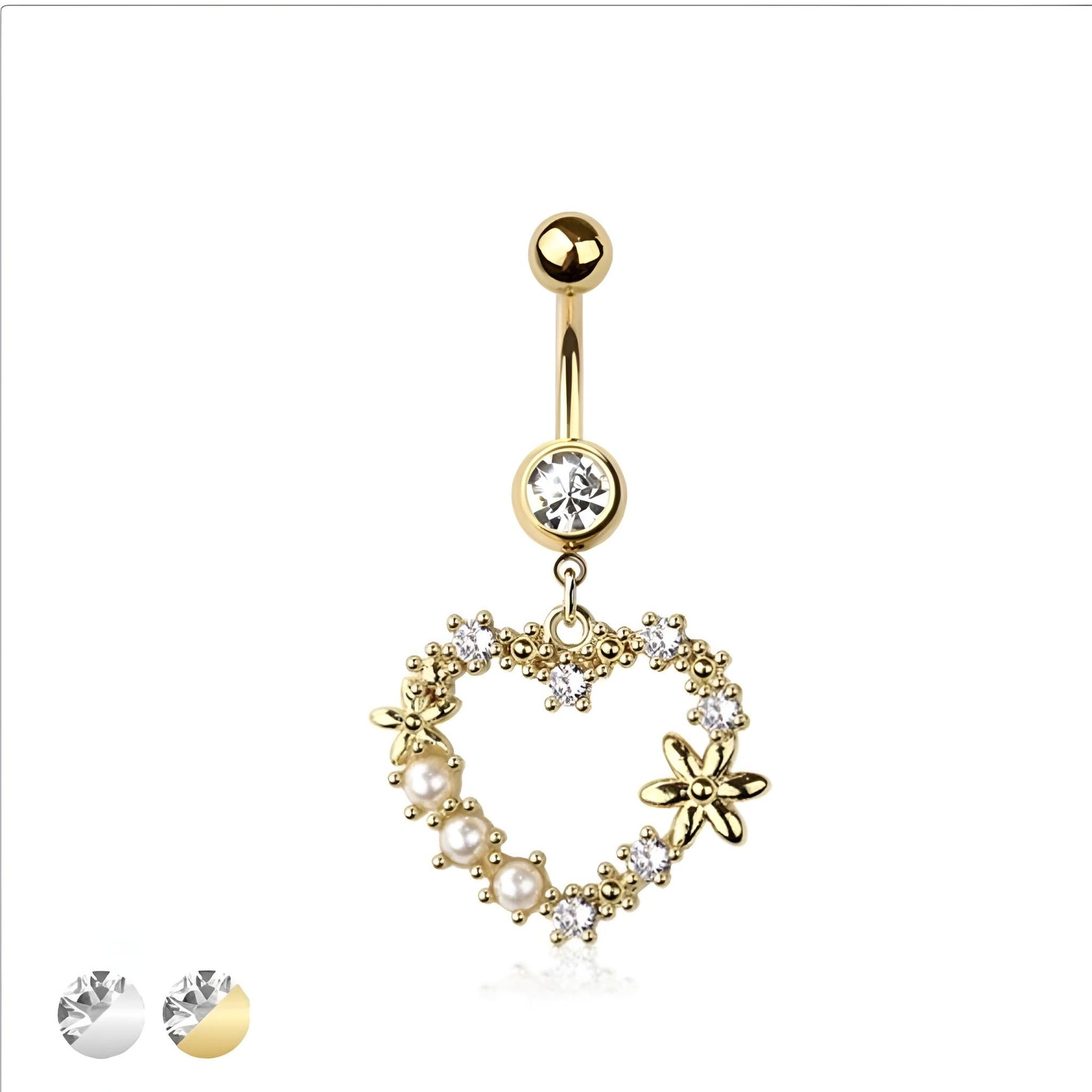Crafted from durable 316L surgical steel and alloy, the Heart Wreath Belly Bar offers both strength and style. With a comfortable 1.6mm thickness and a 10mm bar length, it ensures a secure fit while showcasing a charming heart wreath design. Perfect for adding a subtle yet elegant touch to your look, this belly bar combines quality materials with eye-catching detail.