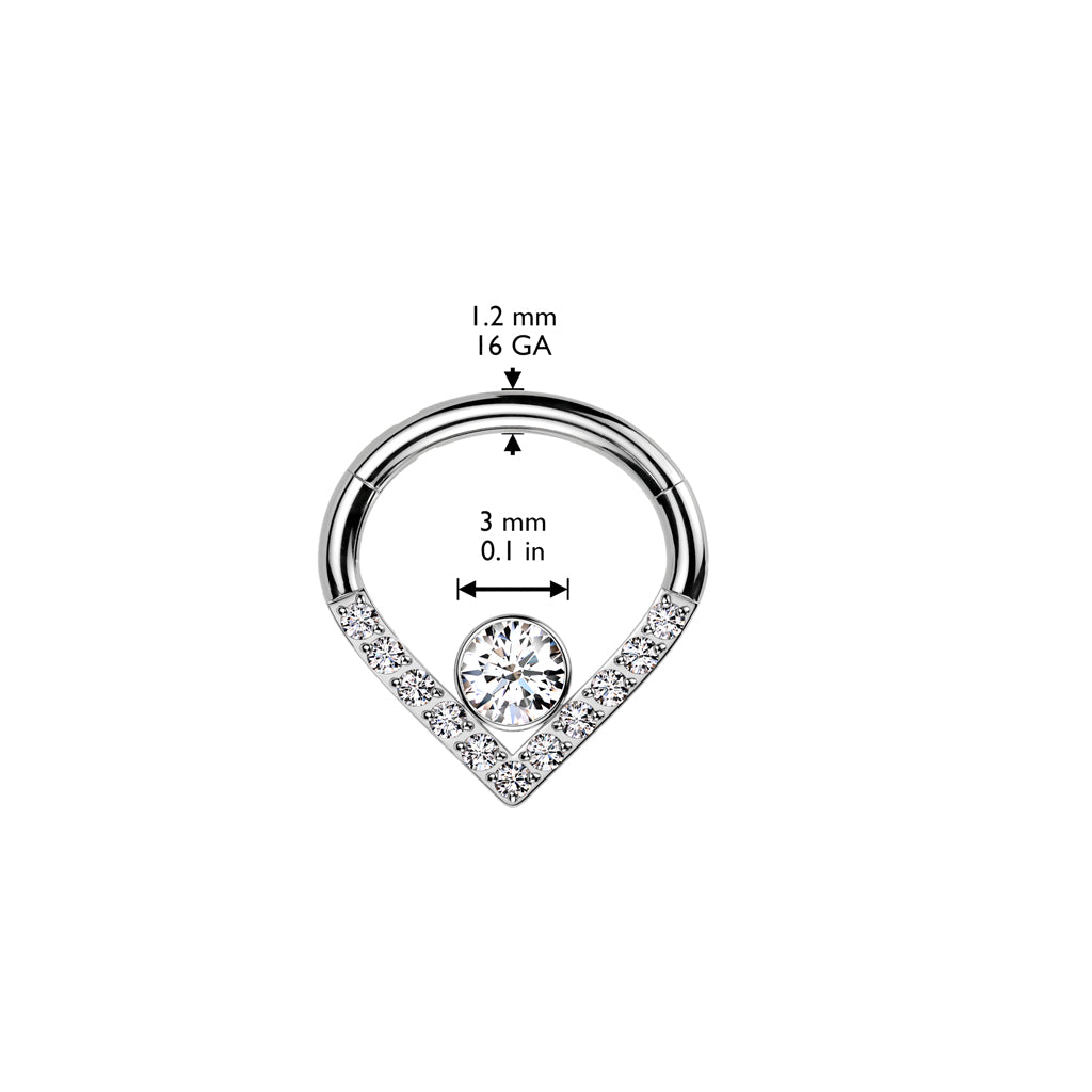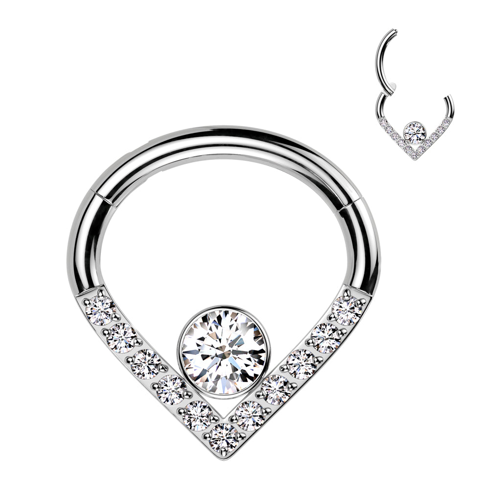 Diez LibertyImplant Grade Titanium Hinged Segment Hoop Ring With Pave CZ Single Line Chevron and CZ