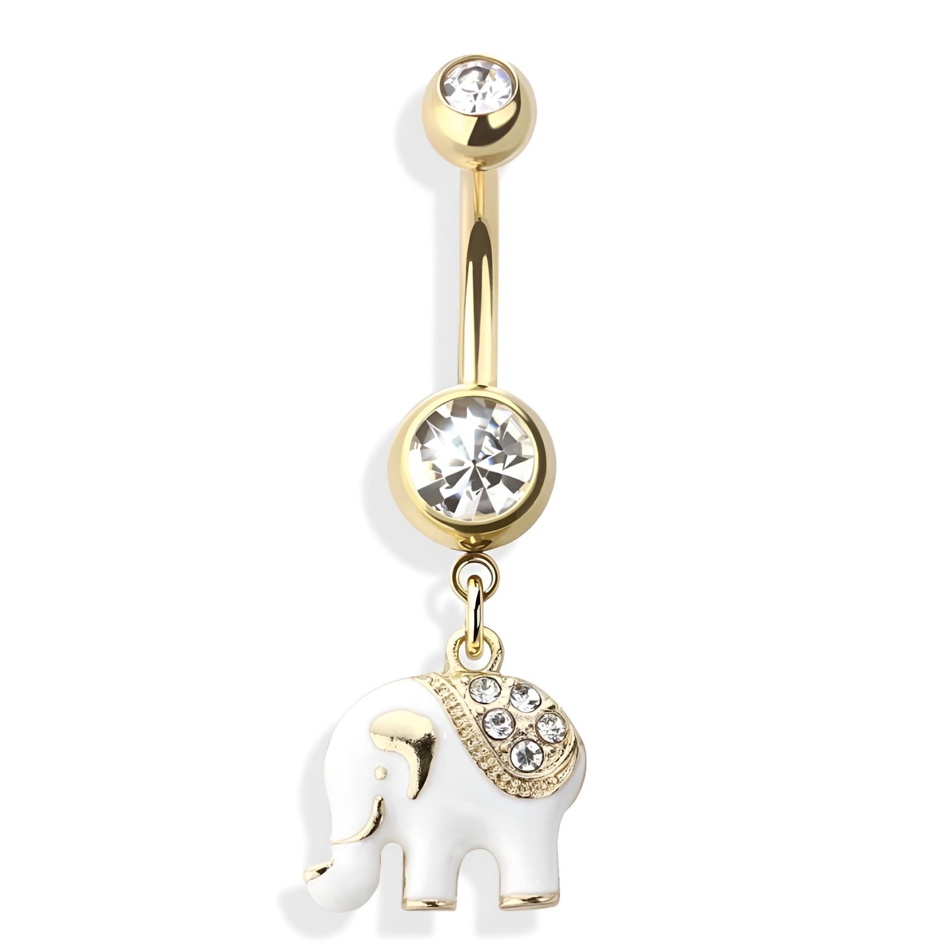 Elevate your body jewellery collection with our Lucky Elephant Belly Bar. Crafted from premium 316L surgical steel and brass, this 1.6 mm-thick bar offers both style and comfort. The 10mm length provides perfect placement, while the charming elephant design symbolizes good fortune and prosperity. Transform your navel piercing into a statement of luck and elegance.