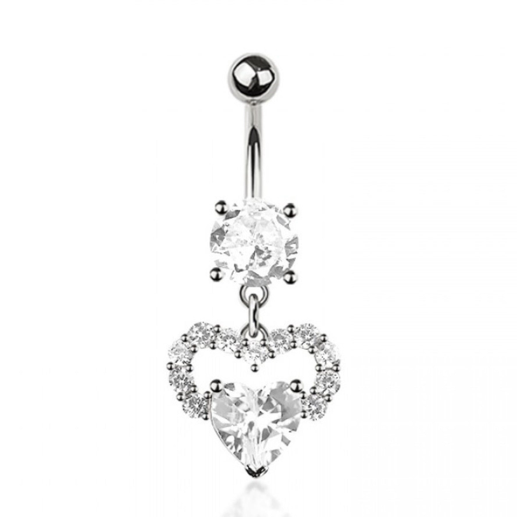Multi Cz Heart Dangling Belly Bar