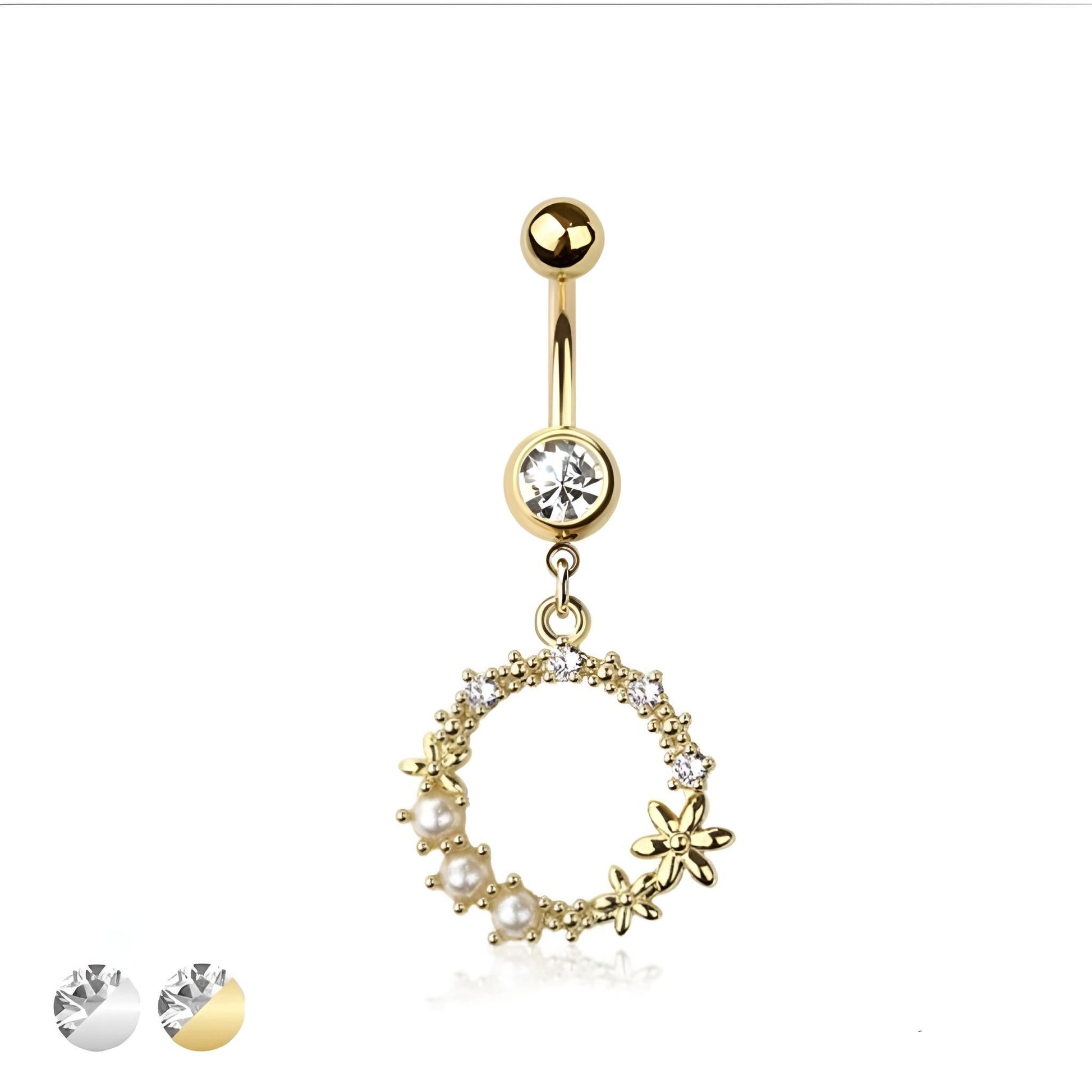 Elevate your style with the Multi Cz Wreath Belly Bar, crafted from durable 316L surgical steel and alloy. Featuring a 1.6mm thickness and a comfortable 10mm bar length, this belly bar offers both strength and a perfect fit. The sparkling multi cubic zirconia wreath design adds a touch of elegance, making it an ideal accessory to highlight your individuality with confidence.