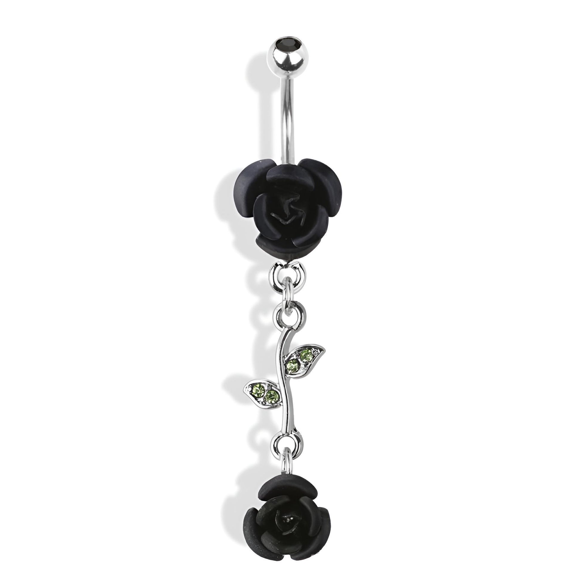 This belly bar features a stunning rose and vine leaf design made with 316L surgical steel and brass. With a 1.6mm thickness and 10mm bar length, it is both stylish and durable. Perfect for adding a touch of elegance to any belly piercing.