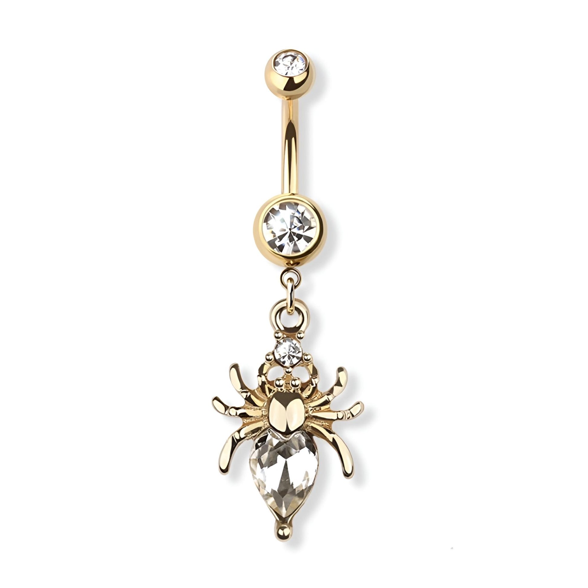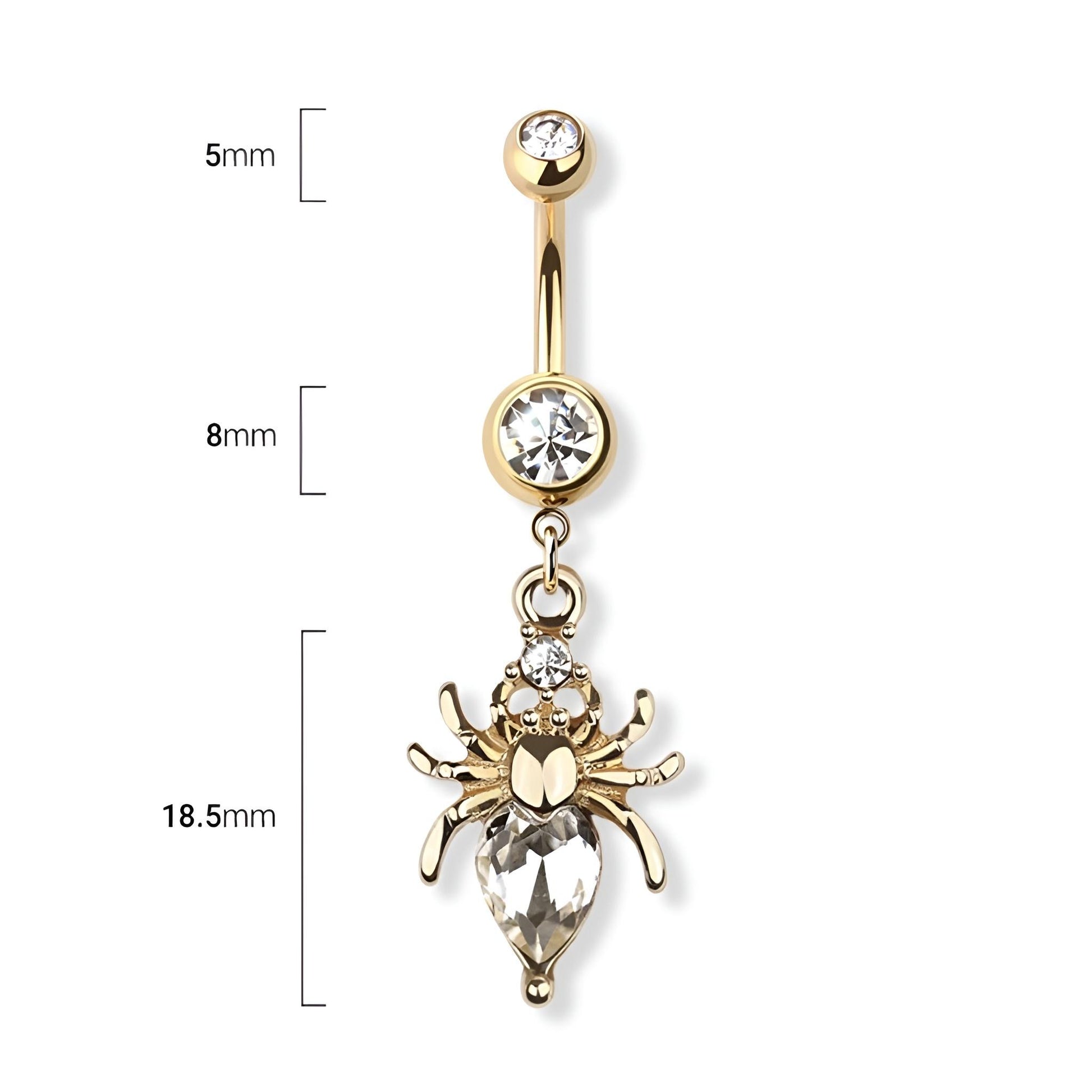 Indulge your wild side with our Spider With Heart Gem Belly Bar! Crafted from 316L surgical steel and brass, this 1.6mm thick bar boasts a 10mm length and a charming spider design with a dazzling heart gem. Elevate your belly piercing game and add a touch of edgy elegance to any outfit.