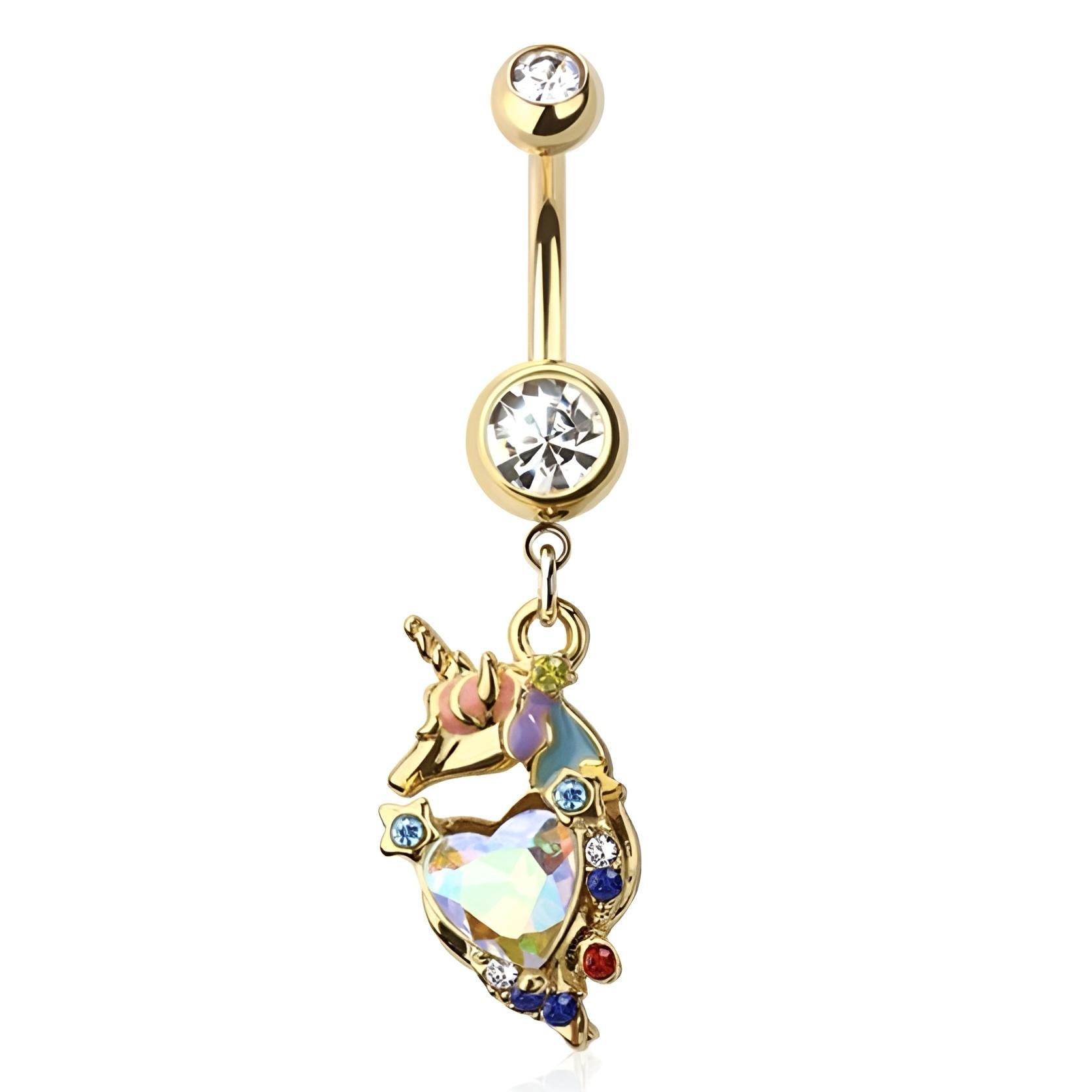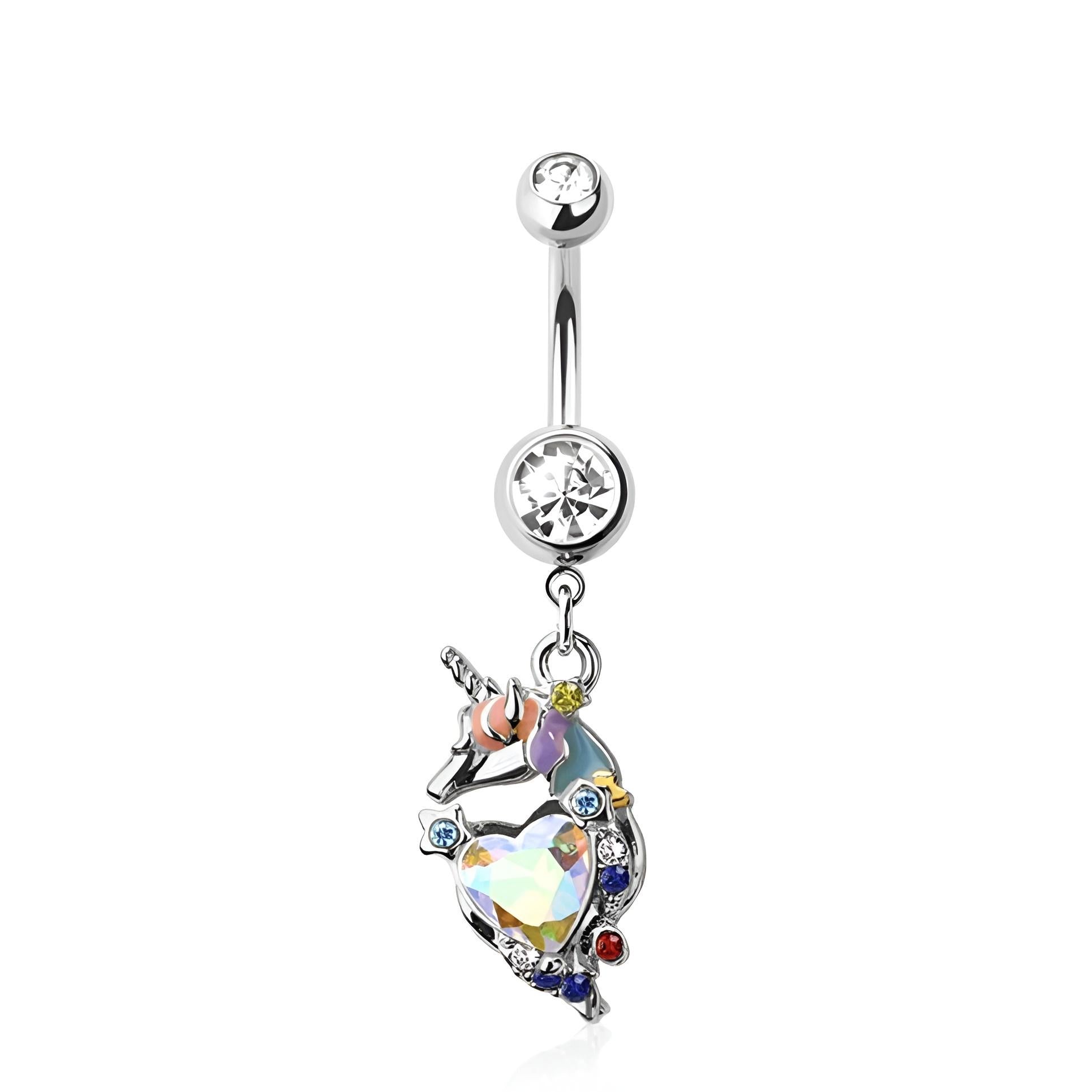Crafted from durable 316L surgical steel, the Unicorn Belly Bar offers both strength and safety for everyday wear. Featuring a charming alloy unicorn detail, this 1.6mm thick bar with a 10mm length ensures a comfortable fit while adding a touch of whimsical style to your look. Perfect for those seeking a unique and reliable belly piercing accessory.